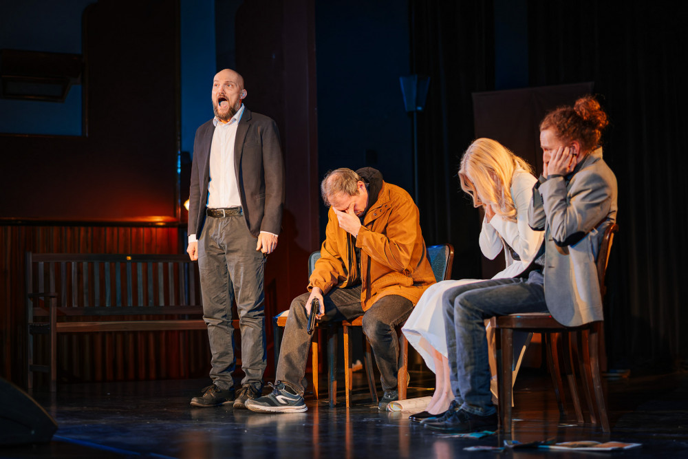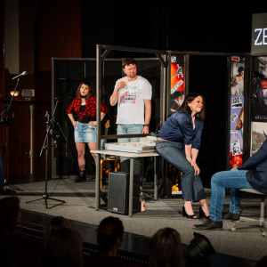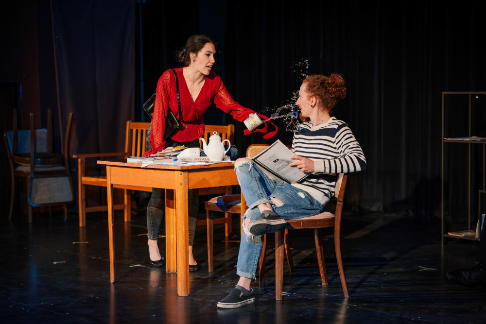 Čtvrté představení letošního ročníku byla lehce absurdní, těžce černá komedie o alkoholismu a o končící éře dabingových studiíDS Haleny.