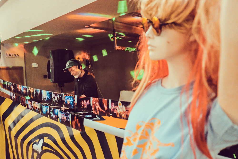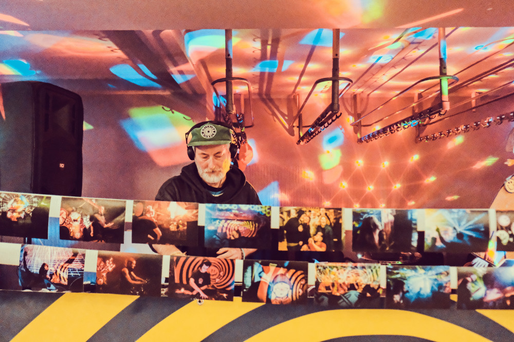 K vernisáži fotografií zahrál Tomáš Klanica (Dj TMS), který po okouzlení prvními teknivaly u nás, založil v roce 1997 spolu s přáteli sound system Mutaphone. Od té doby se věnuje hraní a pořádání menších párty, které navazují na odkaz této subkultury.